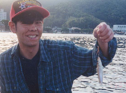 一緒に乗った和久田君はボートのキス釣りに初挑戦