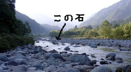 船におとりを2匹入れたのをたもに出し一匹に鼻カンを通し逆針を打ち、川に入れると何故か2匹いる。タモを見ると鮎が居ないのだ!十数年前に始めて釣った鮎を逃がしてしまった以来、2度目の失敗であった!その後1匹しか居ない鮎がメタル0,125の一番上で切れてしまい、目の前真っ暗!目印が付いたままなので辺りを探すが見つかるはずが無い。川の中を良く見ていると大きな石(直径約2m)の裏、横に鮎が見える、あそこにおとりを入れれば掛かりそうなのにおとりがいない!暫く見ていると笹原さんが『おーい!俺のおとり使っていいぞ!』笹原さんもまだ掛かってないのに優しい人!と、思っていると笹原さんに掛かる。続けてパタパタっと!やっぱり良い事をすると自分に帰ってくるんだなと思った。