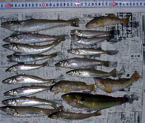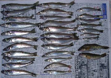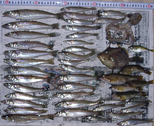 堤防には10人程の釣り客!海岸にも5人程の釣り客!沖提には新しいコンクリートが繋がっていた!海草は無くならず針にくっついて来る!海草を上手く交わして20cmを1匹!だがなかなか釣れず6時までに5匹、7時までに10匹、8時までに14匹、このままのペースでは50匹釣れないじゃないか!この前より乗りが悪くて餌が無くなり方が早く べラ、クサフグ、アイナメ等餌取りが多く餌が12時まで持ちそうに無い!早いけどテトラ前に移動しかし思った以上に釣れない!