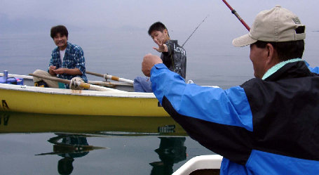 ボート一隻に2人乗るので2人で3杯計6杯と氷を買い、前に有るローソンへ行き人間の餌を買いオカダボートへ行く。(結局は餌取りが多くて餌は足りなかったのである)