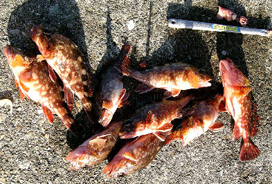 笹原さんが置き竿でササノハとカサゴを釣っていた。これでボーズ逃れ成功だ!