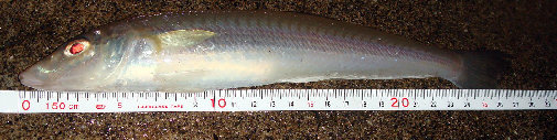 二つ目の仕掛けを作っていると雨が降り出した!大粒の雨だ!防寒カッパに片足を通すとアタリセンサーが鳴り、緩めて置いたドラグが鳴る!慌てて片足だけで竿を持ちテトラに降りて竿を大きく振り合わせを入れ巻く!結構な引きだ!上がって来たのはシロギス!ズボンを引きずりながら検寸!27.8cm自己新記録更新!