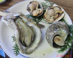 帰りに近くのお食事どころ「太平洋」でカツオ茶漬けを食べました。 焼き貝も熱々!