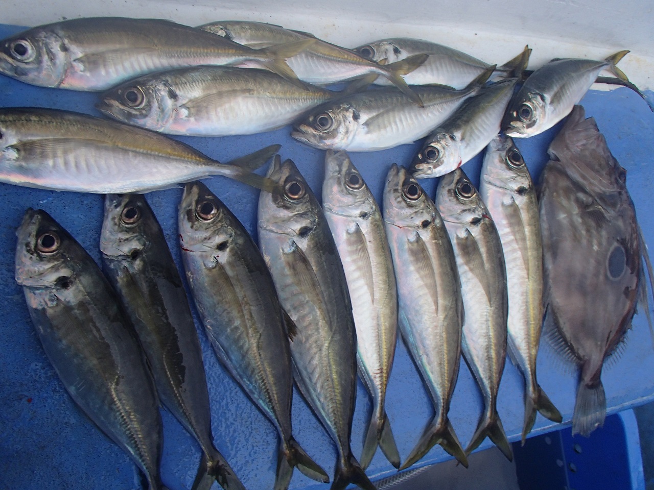 本日の私の釣果はアジ25〜38cmを23匹、マトウダイ40cmを1匹。長谷川さんはアジ40cm頭に22匹。サオ頭は右舷トモの人で40匹ぐらい確保していた。