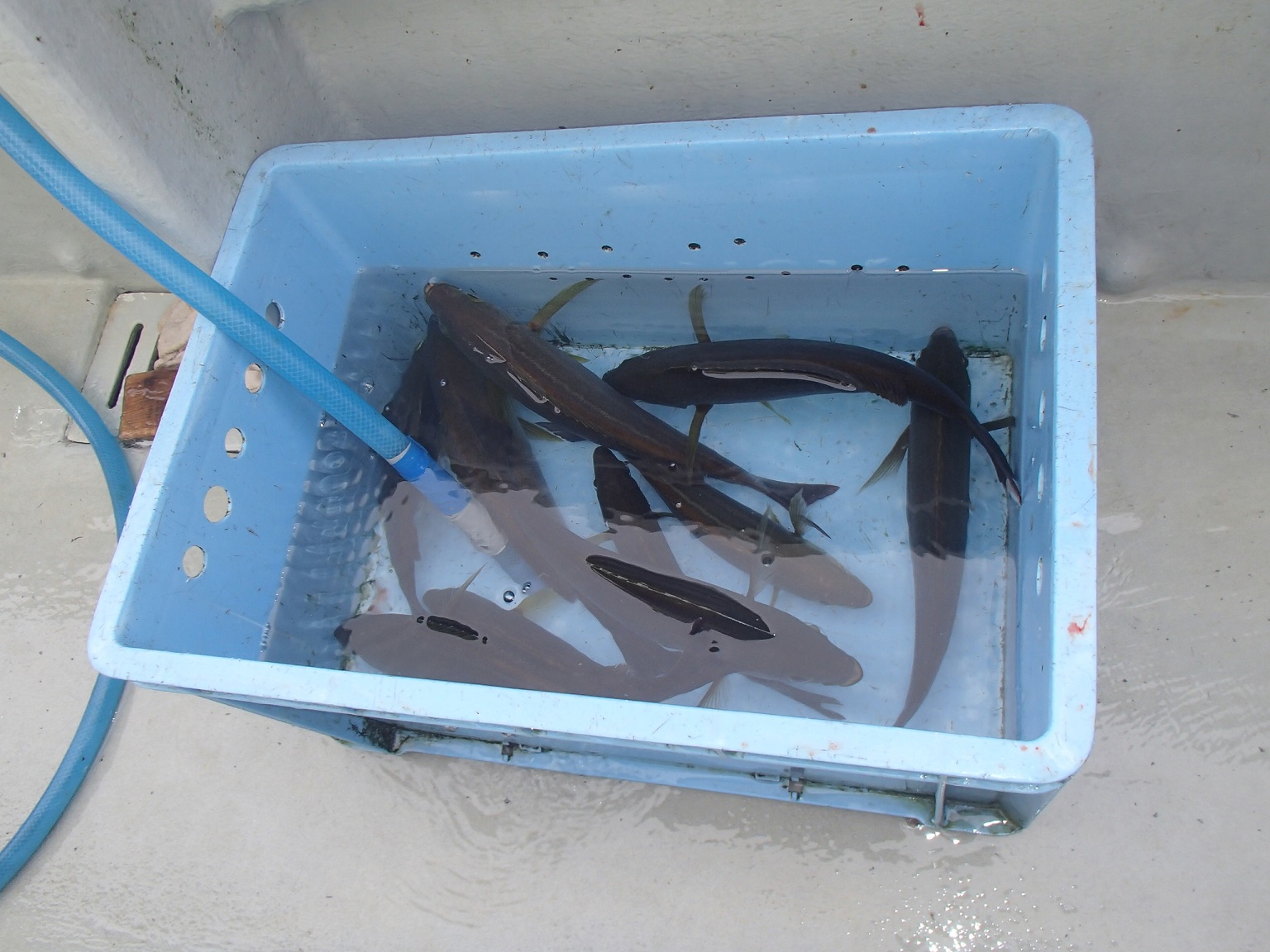 本日の我々5人の釣果は25〜38cm級が127匹。サオ頭は稲葉さんの41匹、2番は五十嵐さんの33匹、私はブービーの15匹。