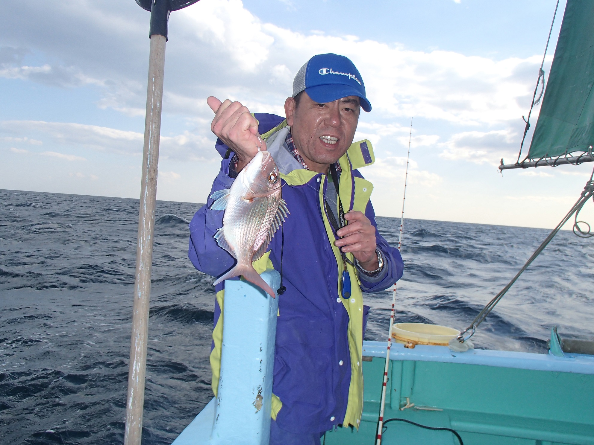 船は約30分で、マダイ釣り場に到着、慎重な場所立て後、投錨して釣り開始となる。