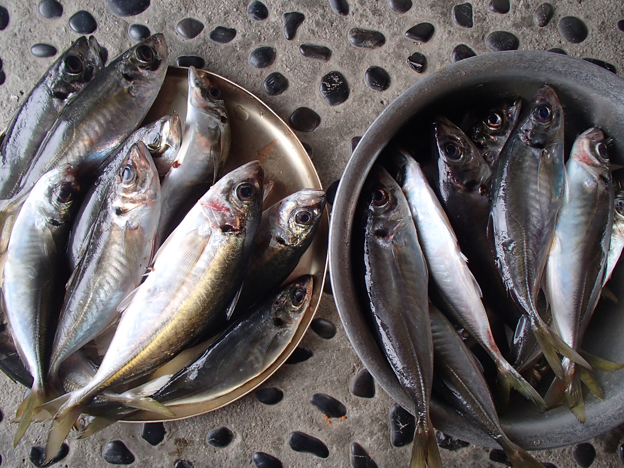 本日の私の釣果は25〜29cmの中アジが32匹、30〜37cmの大アジが6匹。他の人では50匹位上げていた人もいて、平均35匹位だと思われる。中型が多く、重量的には、不満が残るが食べ頃サイズが揃い、全員が満足したものと思われる。