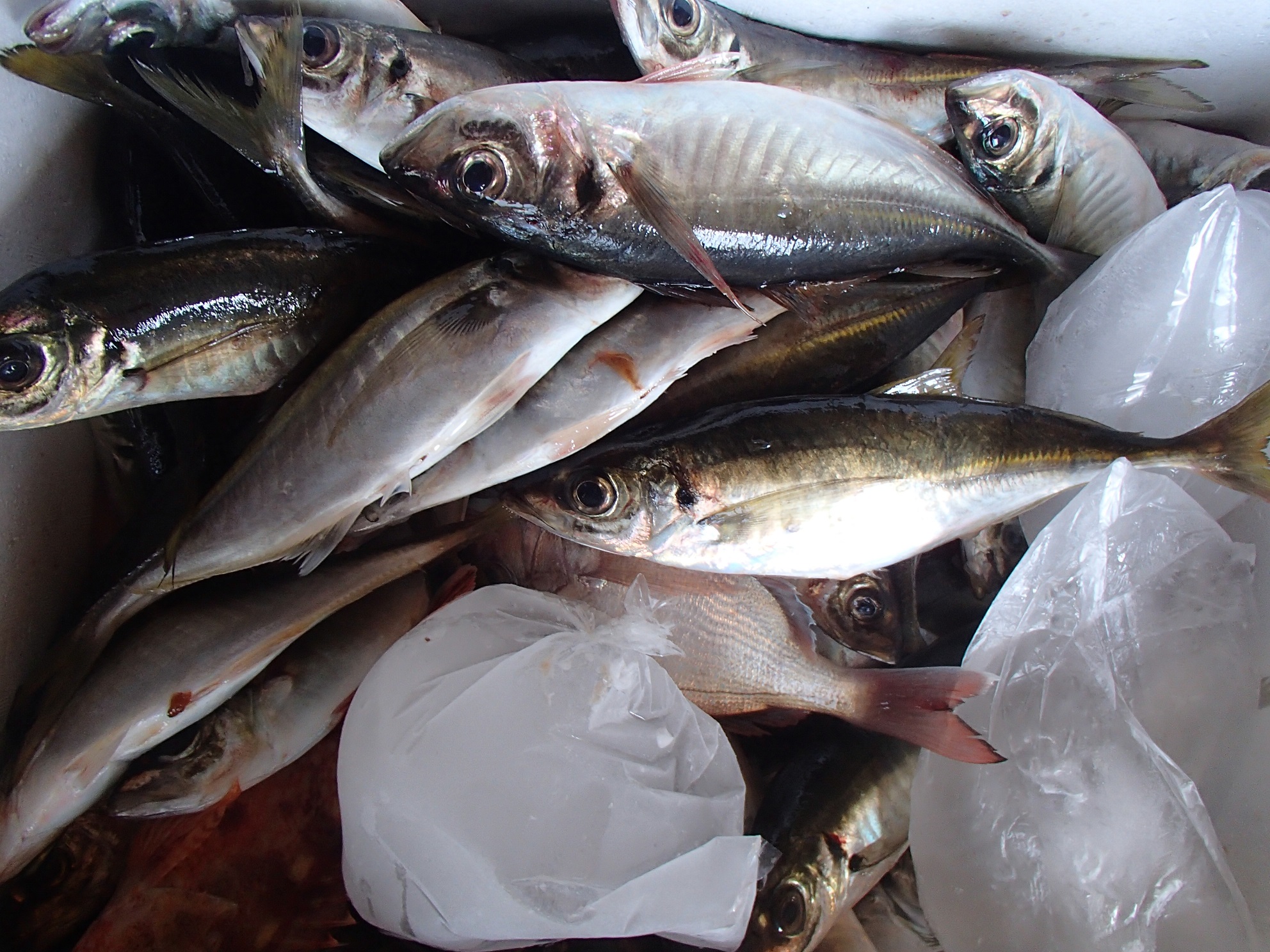 2時半ごろに入った場所が大型アジの巣だったようで、30〜37cm級が入れ食い状態となった。