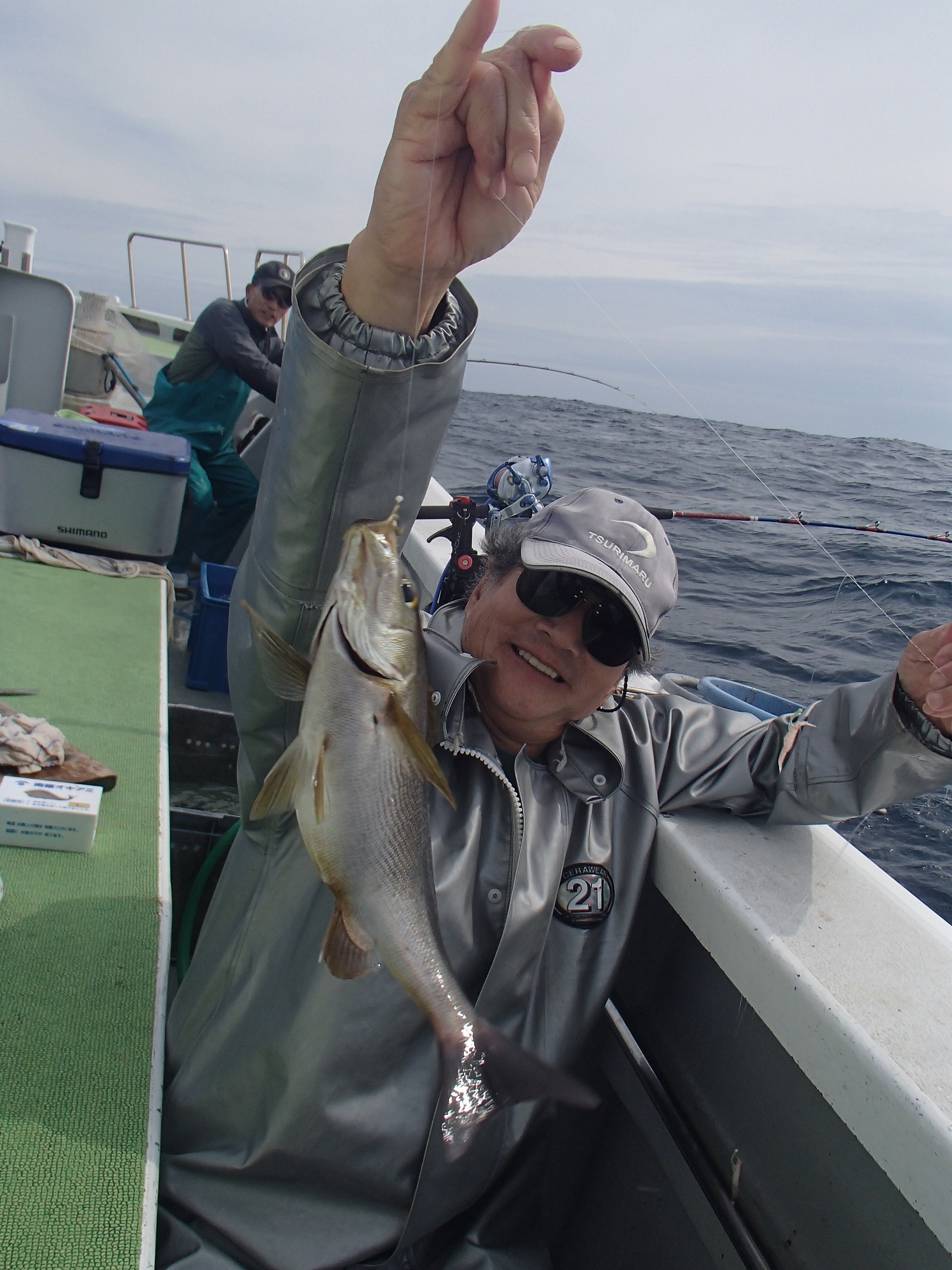 抽選で私の釣り座は右舷胴の間で左に庄山さん、右に千田さん。潮の流れがどちらでも、まずまずの釣り座で、大釣りすることも、ドンジリになることもない気楽な場所だ。