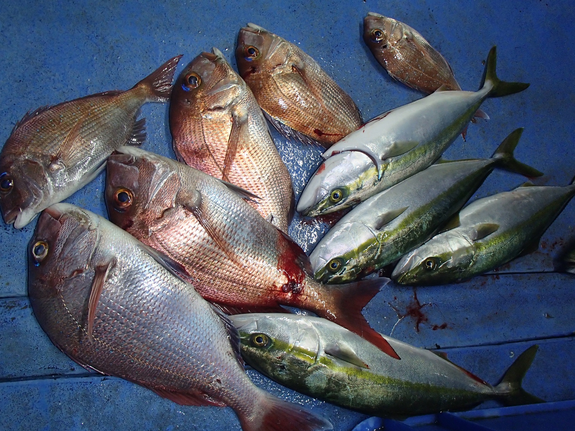 今の時期はマダイに加えて、ハマチ、ワラサ等の青物の回遊時期と重なり、所謂大物釣りとして、人気がある。