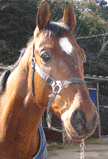 障害では人気の馬。障害は突っ込んでいかれるので抑えて入るように。背中が敏感らしい(大阪の会員さん情報)障害後は踵を踏んで抑えないと突っ走ります(汗)物見してしまうのでこの間の競技会は大変だった。ビニールシートが大嫌い。青系がダメなのかな? | ||