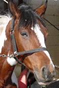 (休養中)ブチがかわいい☆障害&馬場にでています。エンデュランス馬としてはかなり優秀☆全日本エンデュランス大会で60kmの部(?)で3位に入賞☆スタミナがあるのね。障害は前に行きがち。コースをやったら止まらなかった・・・。体が小さい分速歩の時拍子をとるのが大変。でも乗りやすい。 | ||