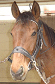 オルフェといっしょにやってきたスーパー障害馬と言う噂。外国産馬です!前髪がかわいい☆まだレッスンには出ていません。 | ||