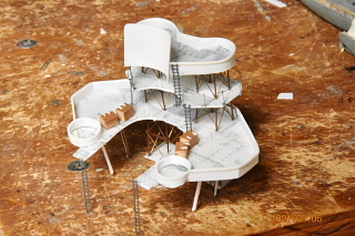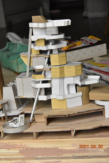 艦橋は複雑なのでボール紙で仮製作 (切ったり張ったりでそれらしくする)
