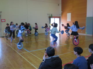 フラダンス演舞披露、腹話術・手品披露、一輪車クラブ演技披露、